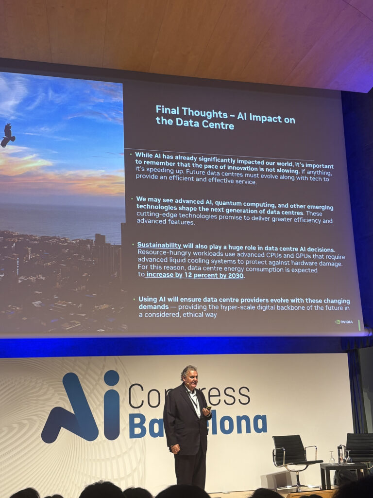 També vam tenir el toc internacional, naturament. El protagonisme va ser per Rod Evans, de NVIDIA, amb una keynote molt esperada sobre la IA sobirana. Va explicar com la companyia lidera el concepte de computació accelerada i com Europa intenta assegurar-se que el futur de la IA no depengui exclusivament de Silicon Valley o Pequín. La “IA sobirana”, va dir Evans, és la capacitat d’un país per desenvolupar i governar els seus propis sistemes segons les seves lleis, ètica i interessos. Un concepte ambiciós… Però també una mica utòpic, sobretot si mirem les dependències tecnològiques actuals. Tot i així, el missatge és potent: Europa vol ser protagonista, no només client.